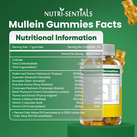 Vendor:NutrisentialsMullein Gummies 2000mg - Respiratory Support with Mushrooms - Vegan - 60 Gummies