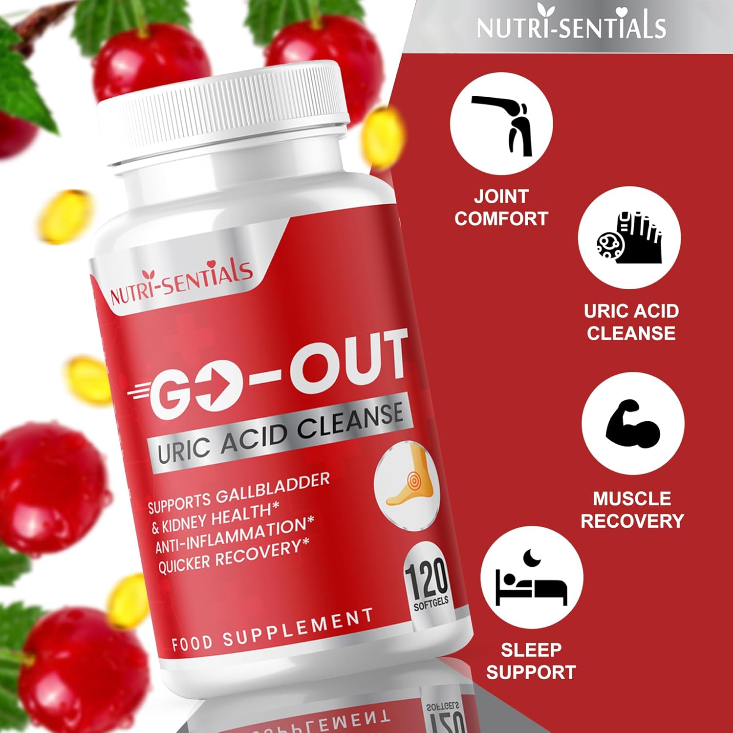 GO-Out Uric Acid Cleanse Supplement| Natural Supplements Promoting Kidney & Joint Support| Includes Tart Cherry, Bilberry Extract and Celery Seed Extract | Uric Acid Support Formula|120 SOFTGELS
