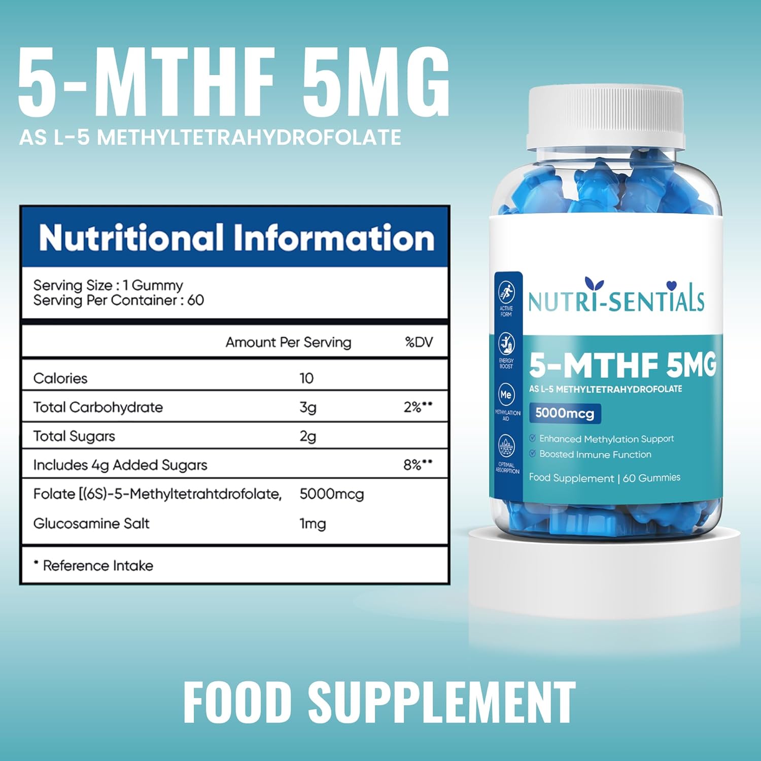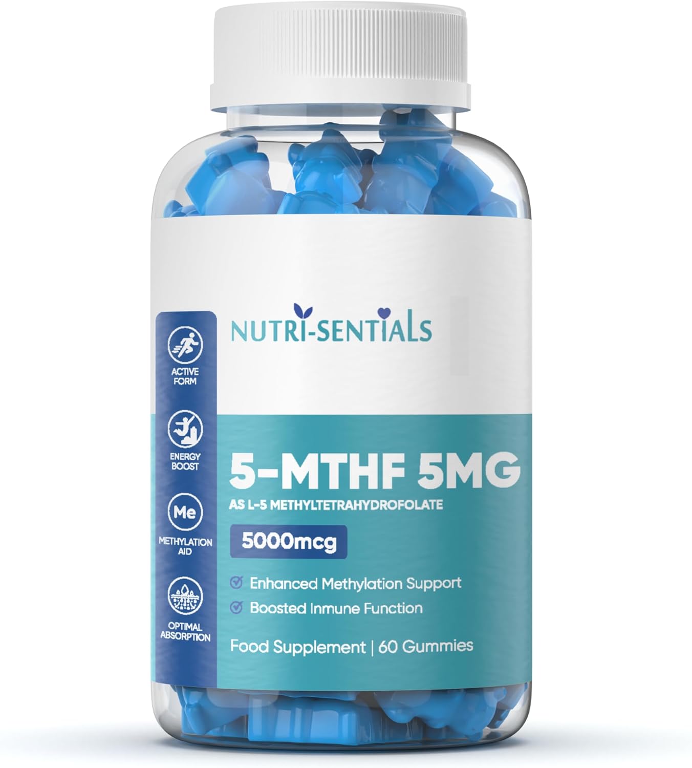 L-5 Methyl Folate Supplement- 5000mcg Active Form Folic Acid Gummies for Optimal Absorption- High Strength Folic Acid Supplement- Activated Methylfolate Supplement- 60 Gummies