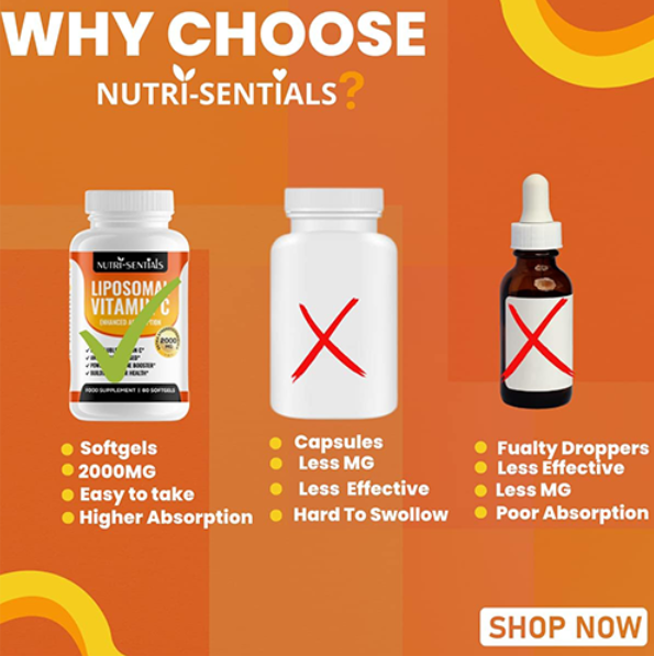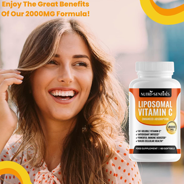• What Makes Liposomal Vitamin C Different? Liposomal Vitamin C is not water-soluble, instead available in a fat-soluble format. In essence, it helps you get the most out of the supplement. It strengthens body’s immune system, collagen production, regulates blood pressure levels, and can even lower risk of heart diseases. STRENGTH Vitamin C formulation to defend your body and boost