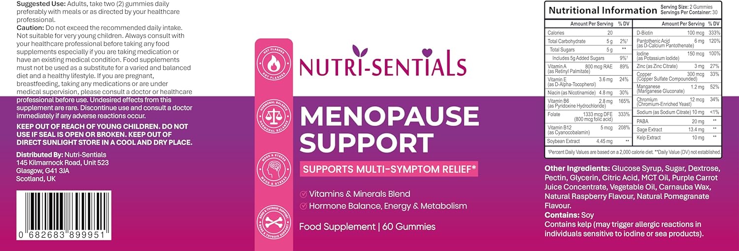 •  MULTI-SYMPTOM MENOPAUSE RELIEF – Cool the heat and lift your spirit with our menopause vitamins gummies, which are specially formulated to ease common menopausal symptoms including hot flashes, night sweats, mood swings, and fatigue, helping you feel balanced and supported every day!