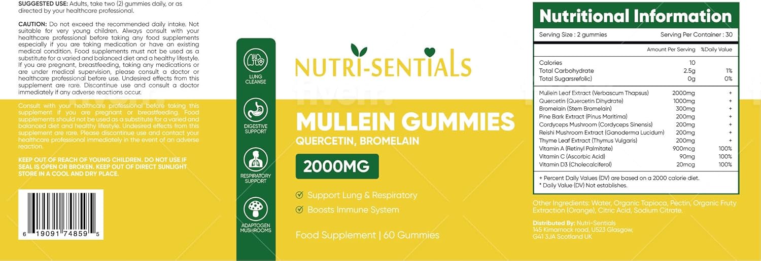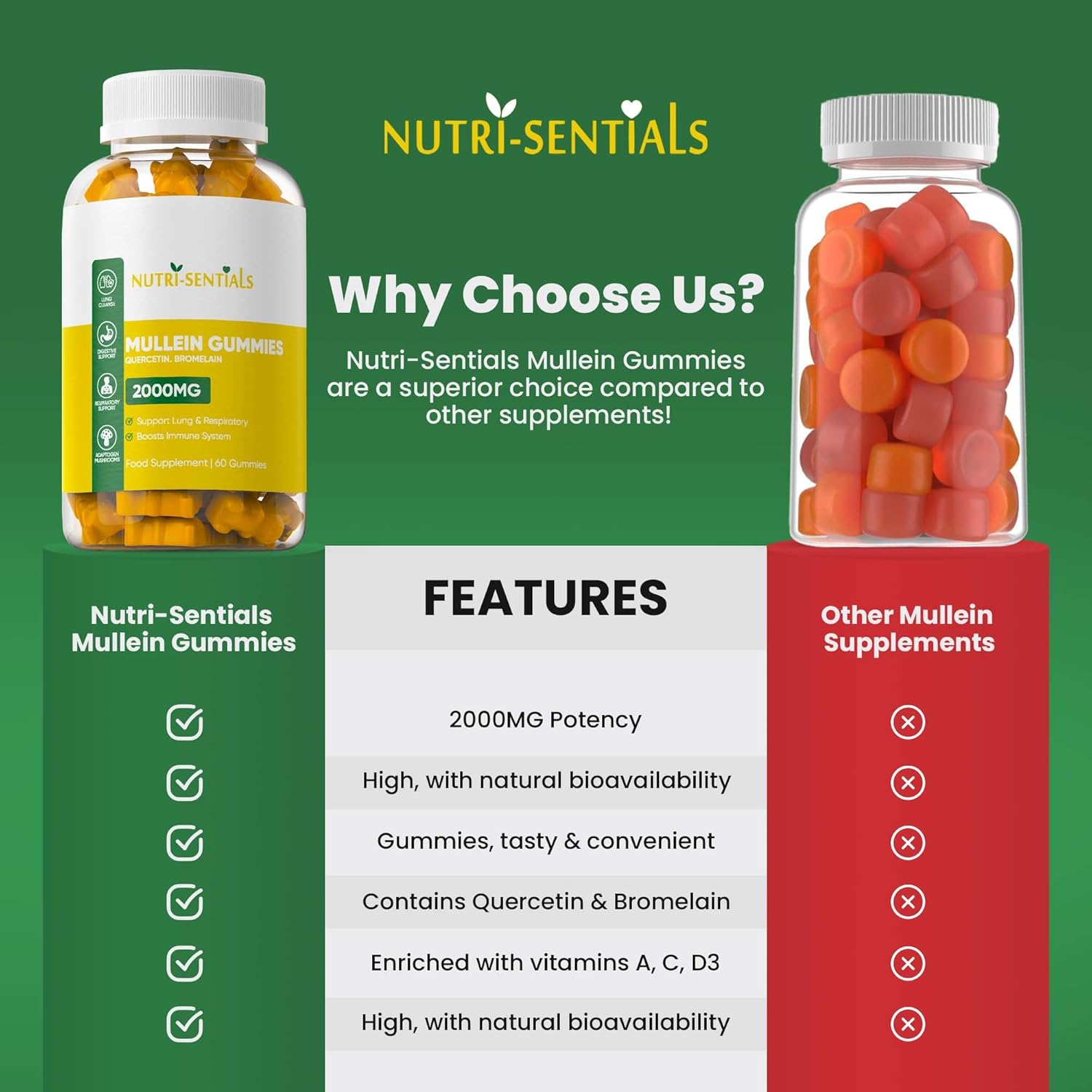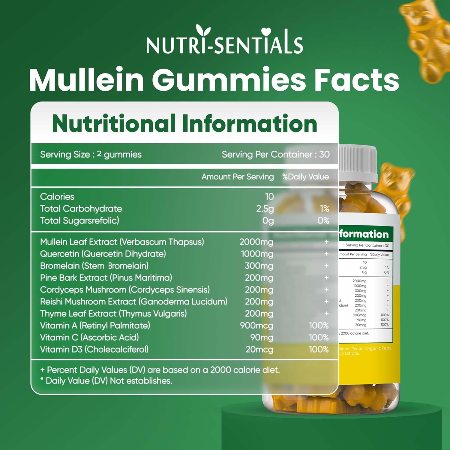 At Nutri Sentials, we believe in providing high-quality, natural supplements that are effective and safe. Our Mullein Gummies are carefully crafted using the finest ingredients, and we take pride in maintaining strict manufacturing standards. We ensure each batch is tested for purity and potency, so you can trust that you’re getting the best product for your wellness. Choose Nutri Sentials for premium supplements you can rely on, designed to support your health in a natural, gentle way.
