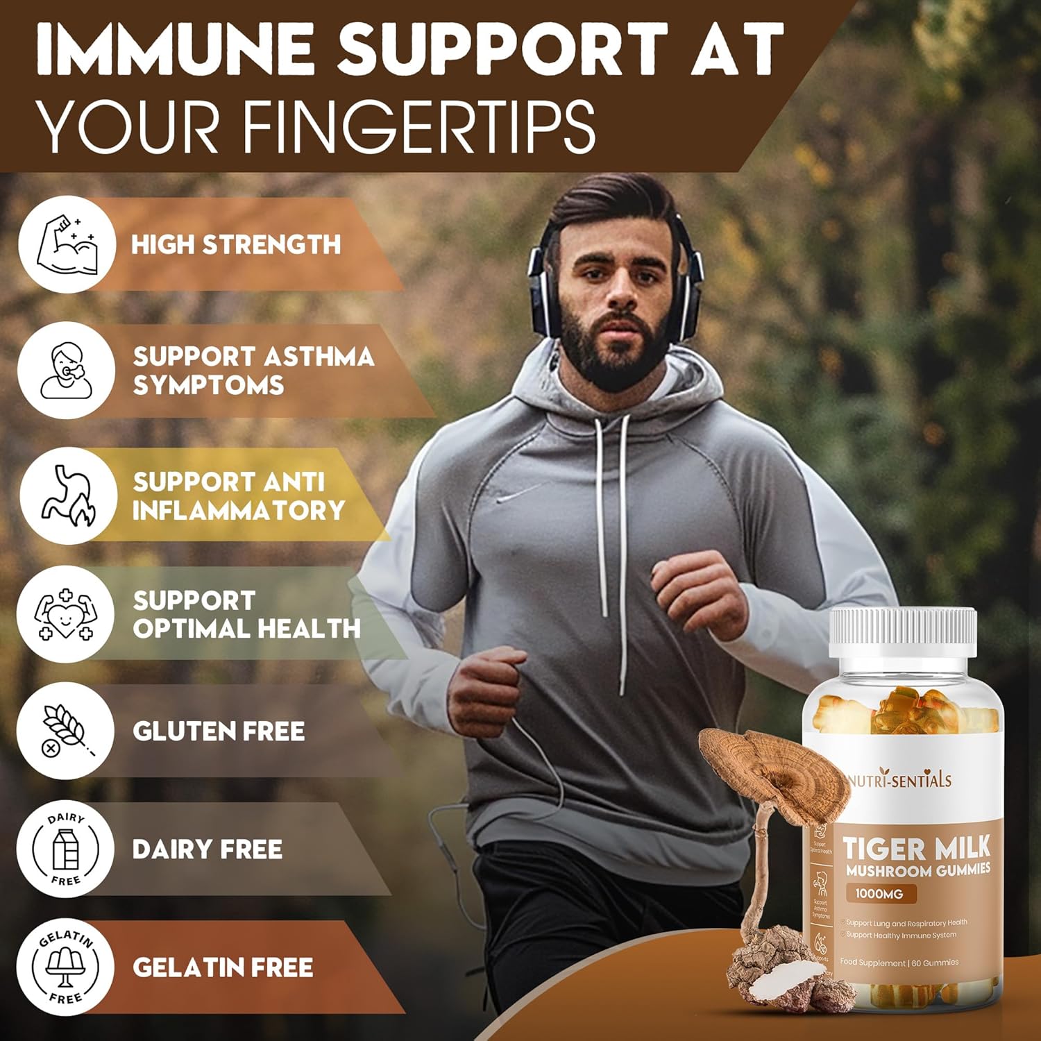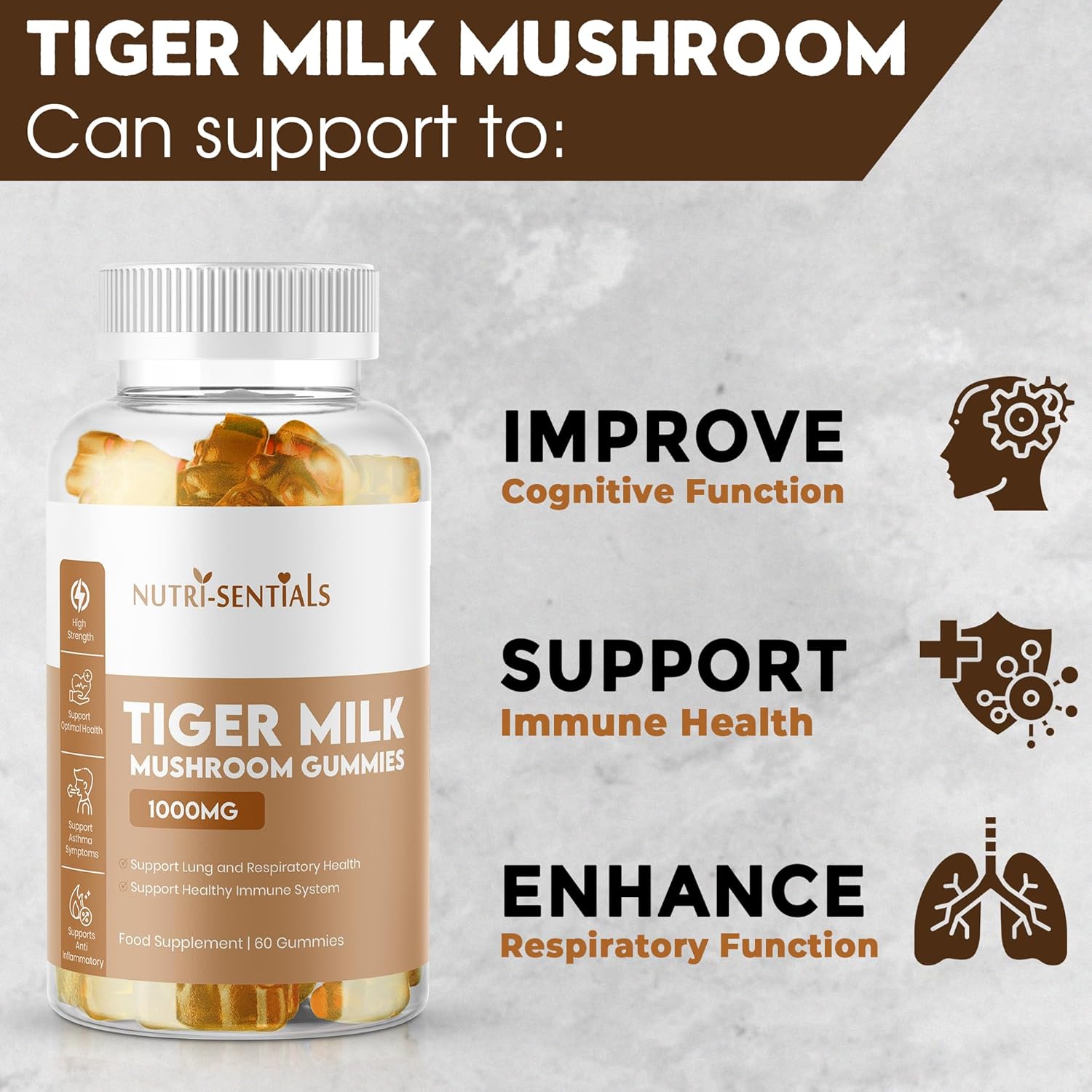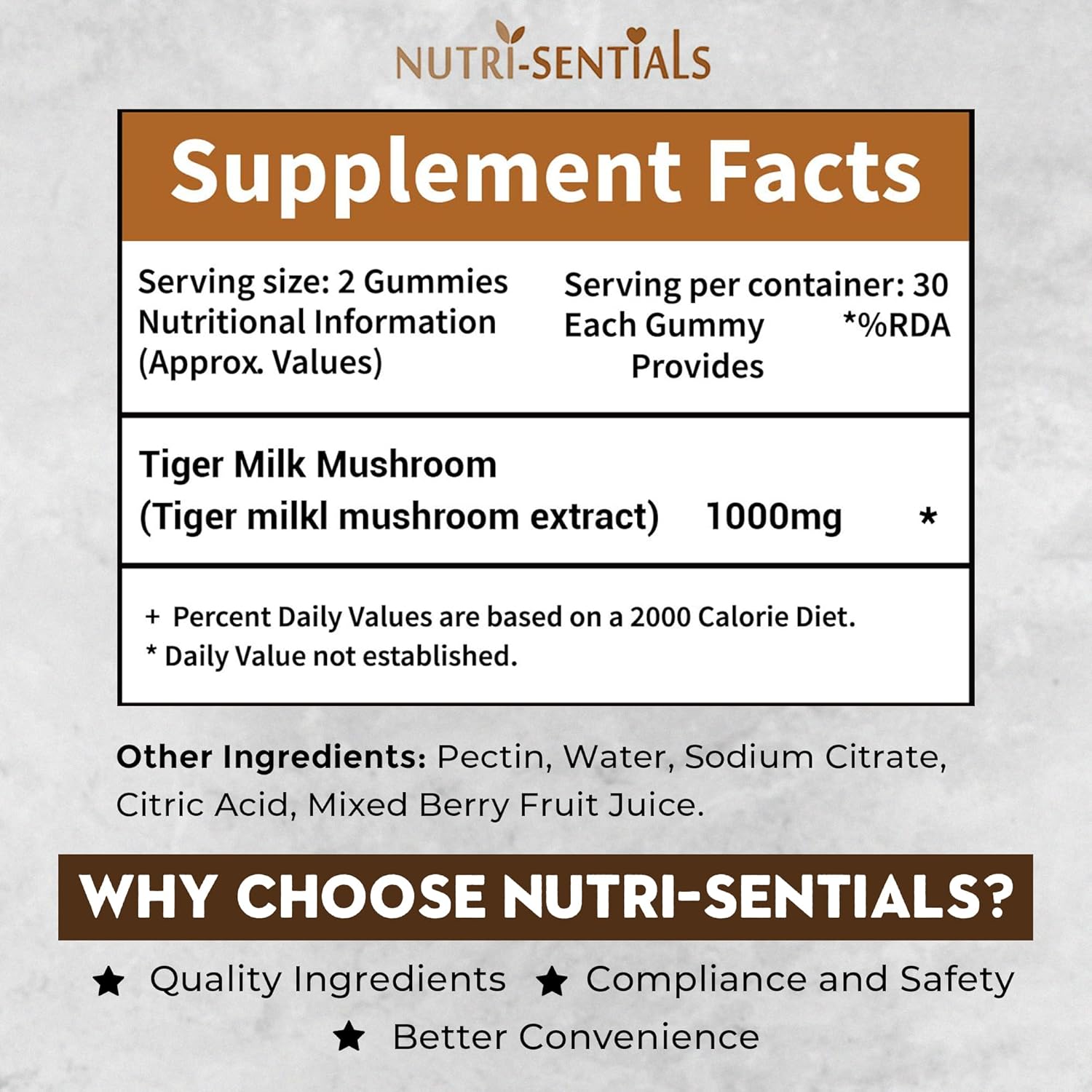 • IMMUNE SUPPORT AT YOUR FINGERTIPS: Harness the unique properties of Tiger Milk Mushroom with our Nutri-Sentials Gummies, each packed with 1000mg of extract. Ideal for individuals seeking to bolster their immune system and enhance daily wellness